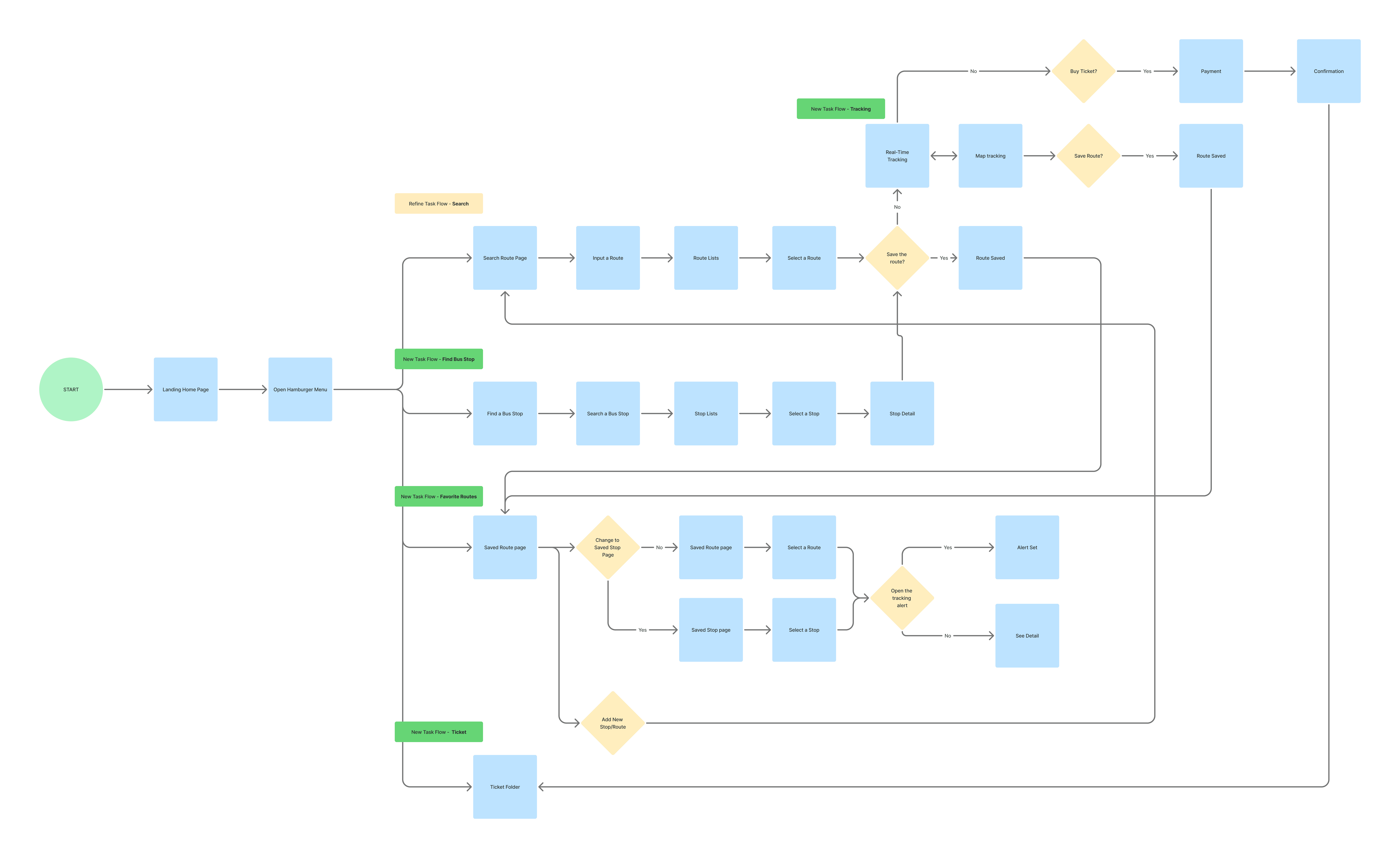I drafted sketches with possible solutions to the issues identified after organizing research findings using Affinity Diagram. Then I generated 25+ ideas and prioritized real-time bus tracking, favorite routes for quick access, and integrated ticket storage.
