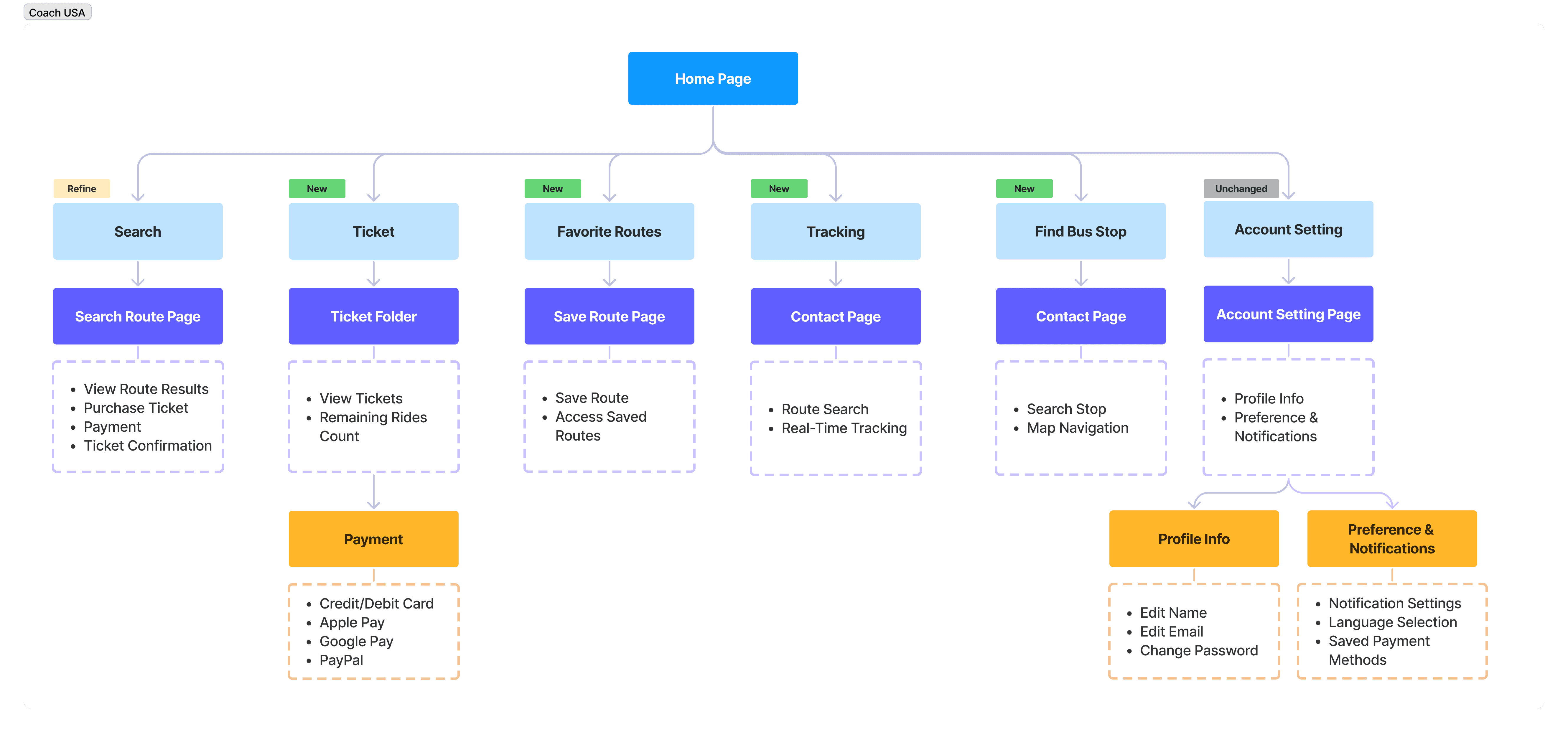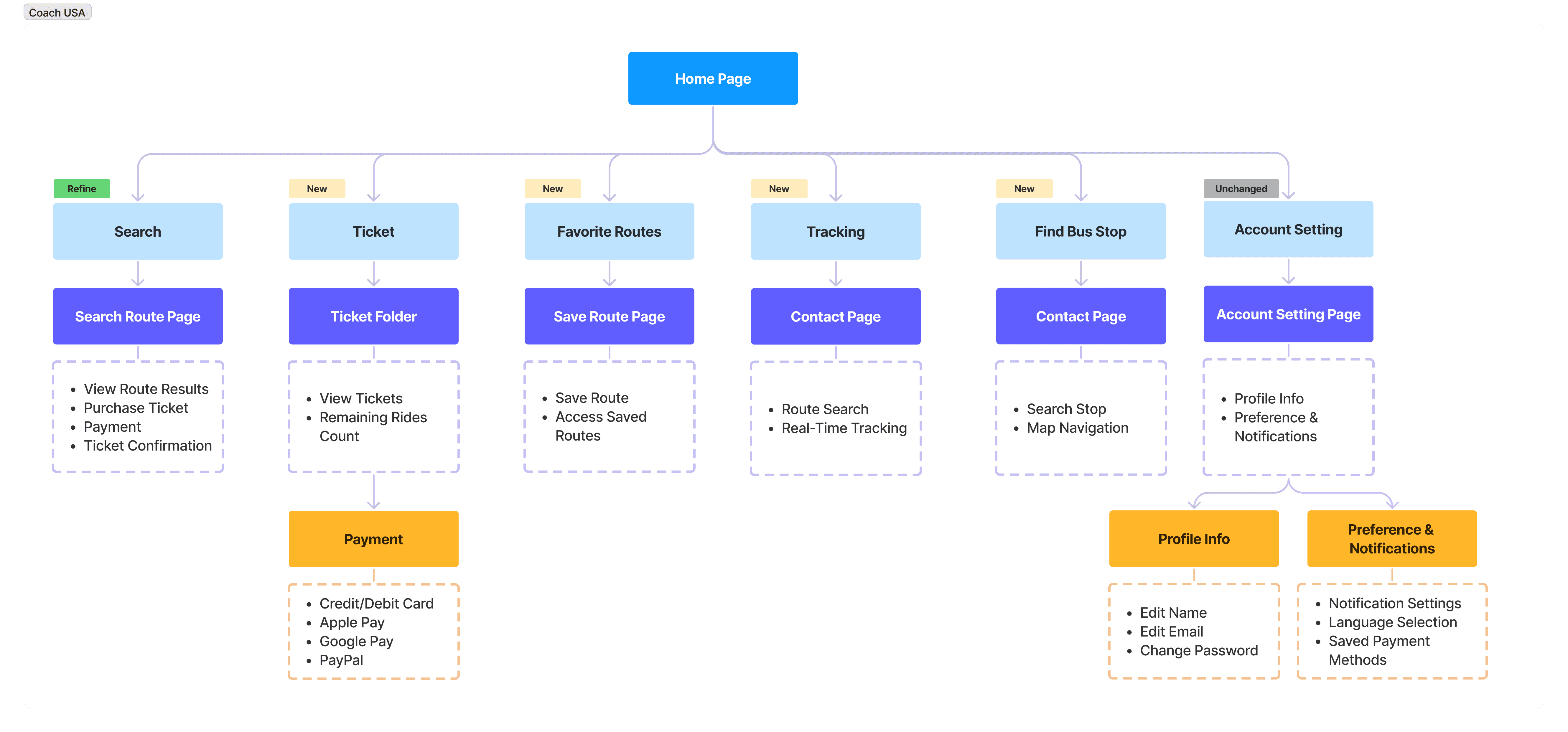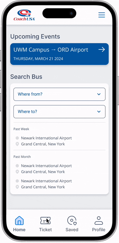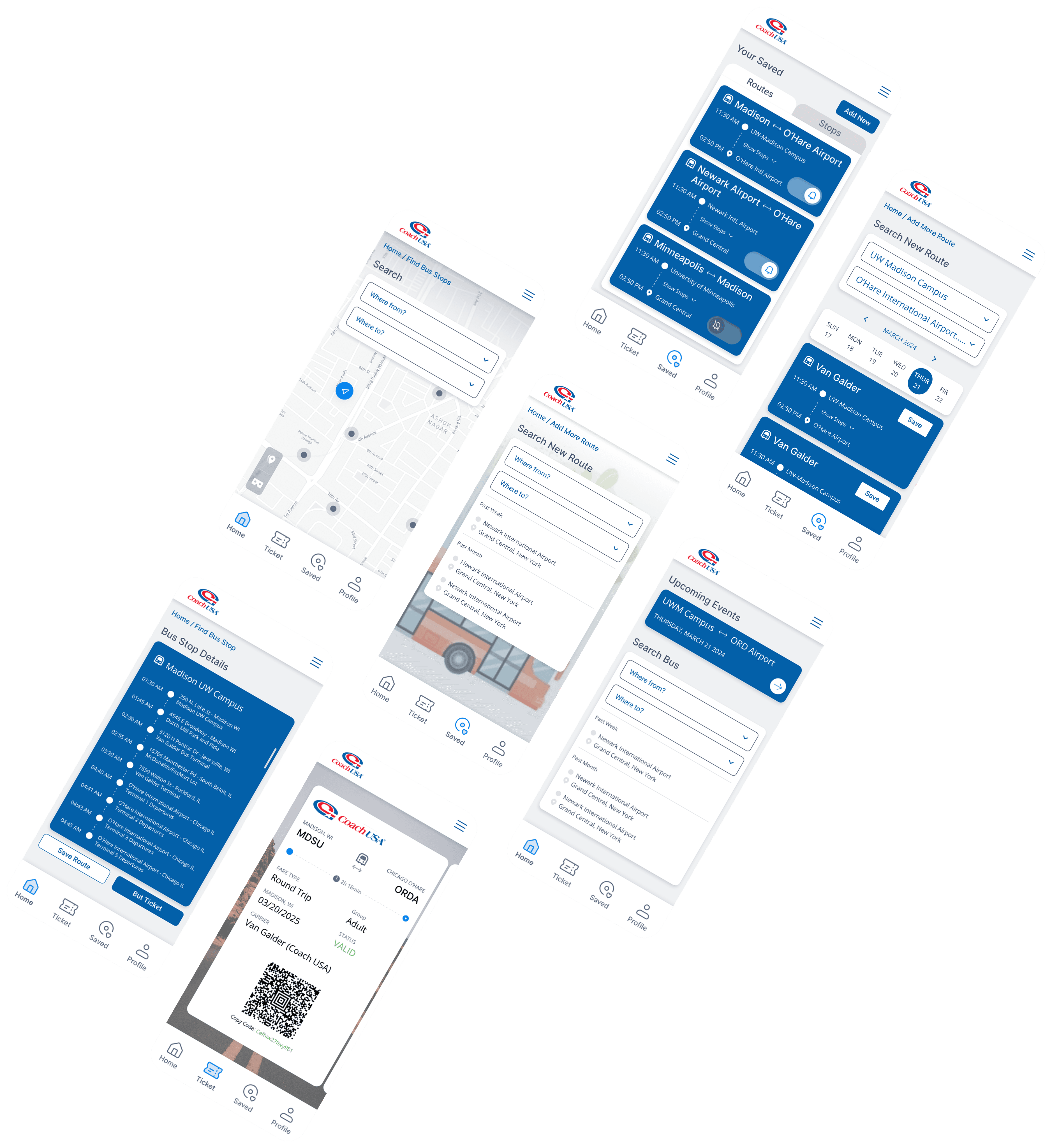 Through user interviews and app review analysis, I uncovered recurring pain points among Coach USA riders. I addressed them by improving existing flows and introducing new, high-impact features: