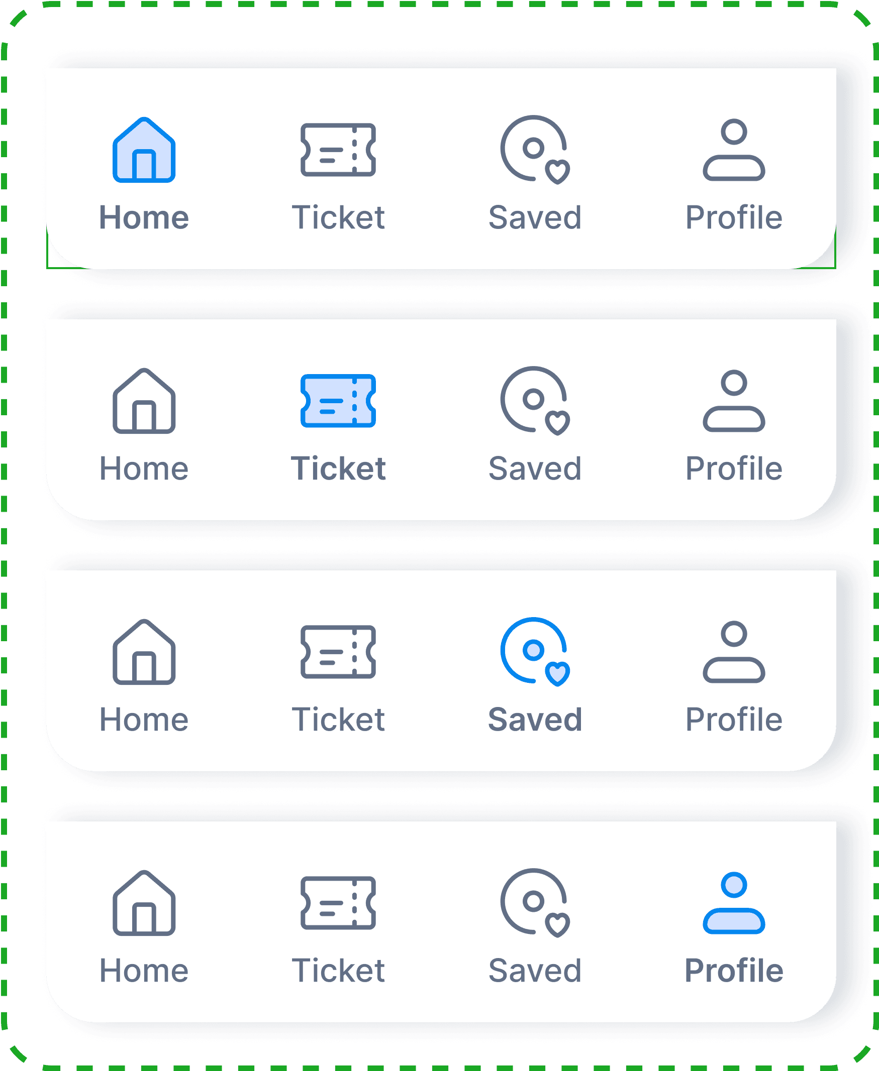 I changed selected icons from outlined to filled for clearer visual feedback and easier menu recognition.