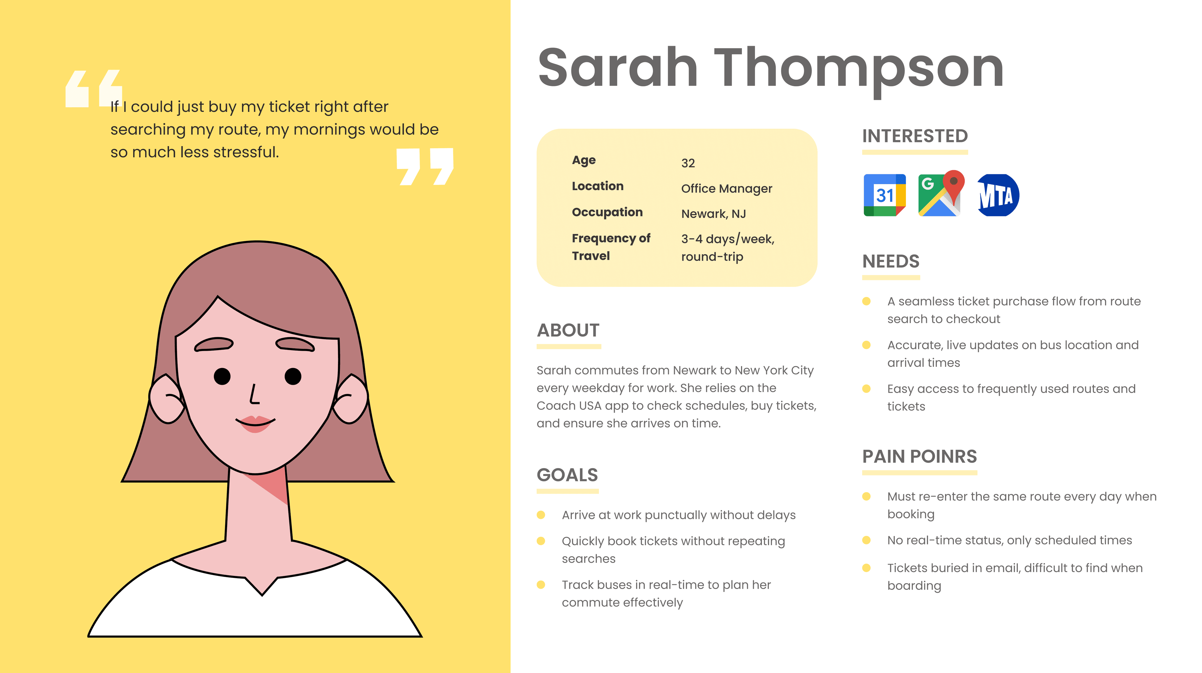 I recruited 10+ active Coach USA riders for user interviews and assigned 5 defined tasks using a paper prototype.