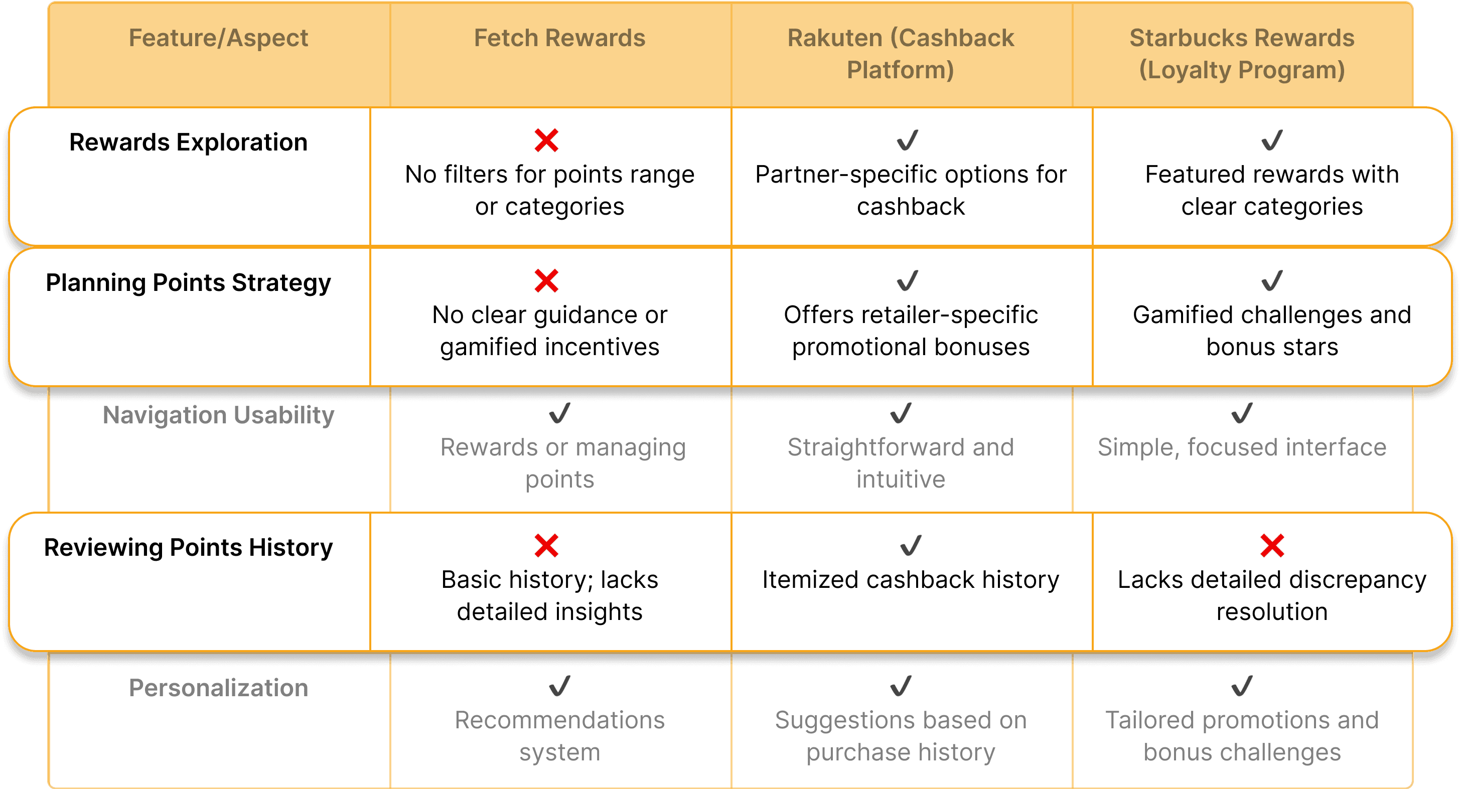 💡 Shana's Insight: Competitive analysis isn’t just about comparison—it helps identify gaps that usability testing can validate, ensuring targeted improvements